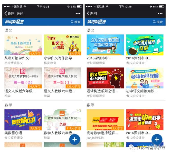 为将精品课中的优质课程资源精准的推荐给老师、学生、家长,智慧校园针对不同学校类型提供了个性化的课程页面,小学类型的学校默认进入到小学课程推荐页,中学类型的学校默认进入到中学课程推荐页